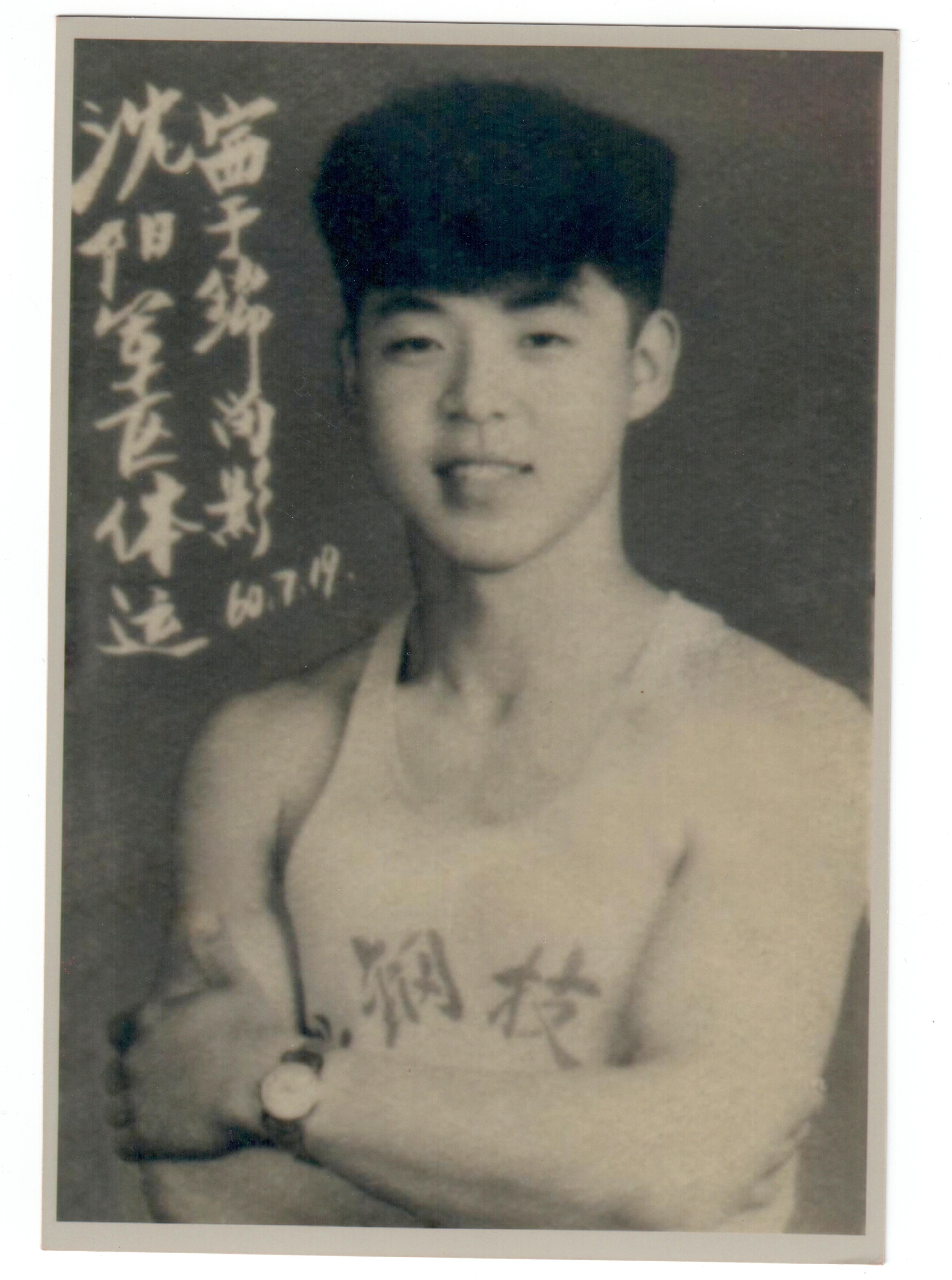 1960年7月19日,雷锋在锦州市参加沈阳军区体育运动会,获得三级运动员徽章并留影纪念。